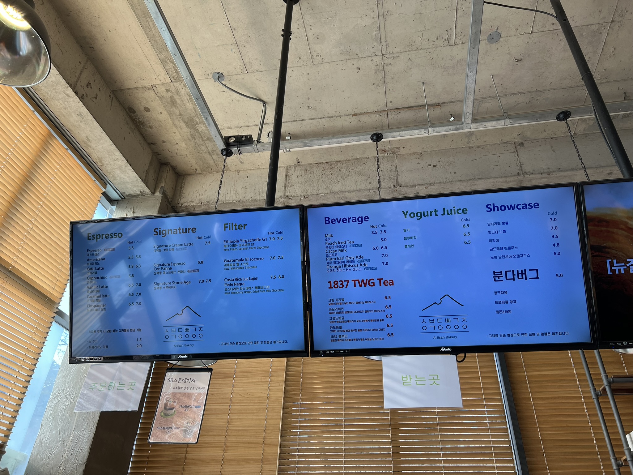 평일 오전 오픈 시간에 입장하여 사람이 거의 없습니다. 연탄모양빵이 이쁘네요. 생크림 팡도르가 시그니쳐 메뉴라하던데 몽블랑을 주문했습니다. 겉은 바삭바삭한 페이스츄리고 속은 촉촉하고 부드럽습니다. 달달하니 커피와 함께 먹기 좋습니다. 계단형 의자들 위쪽에 푹신한 소파 자리도 있습니다. 커피맛은 스타벅스 커피보다는 조금 더 낫습니다. 아래층에는 소파들 위주의 편한자리가 더 많습니다.