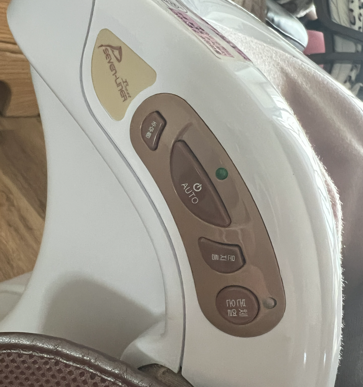 조작부는 비교적 간단합니다. 전원 버튼 양옆에 주무름과 문지름이 있습니다. 예열 버튼은 맨 마지막에 있습니다. 단순한 조작 패널 마음에 듭니다.