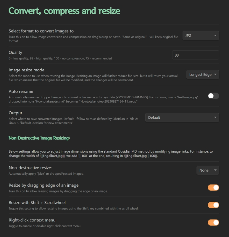 옵시디언으로 문서를 생산할 때 이미지를 첨부하여 사용하게 됩니다. 이미지 파일들은 옵시디언 볼트 어디엔가에 저장됩니다. 파일명, 저장규칙, 이미지 리사이징 및 문서 파일 이동시 첨부된 이미지도 같이 이동되도록 설정을 만들었습니다.