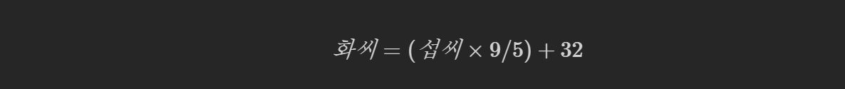 예를 들어, 섭씨 20도를 화씨로 변환하고자 할 때: