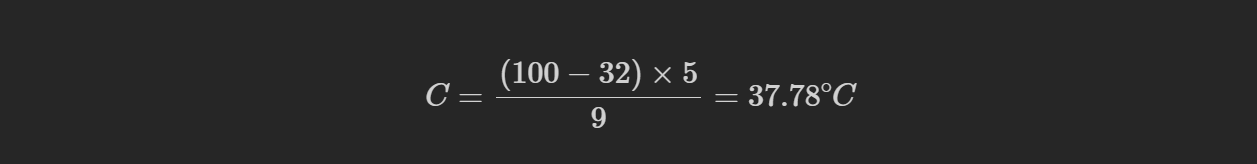 예를 들어, 화씨 100도를 섭씨로 대략 변환해보겠습니다.
