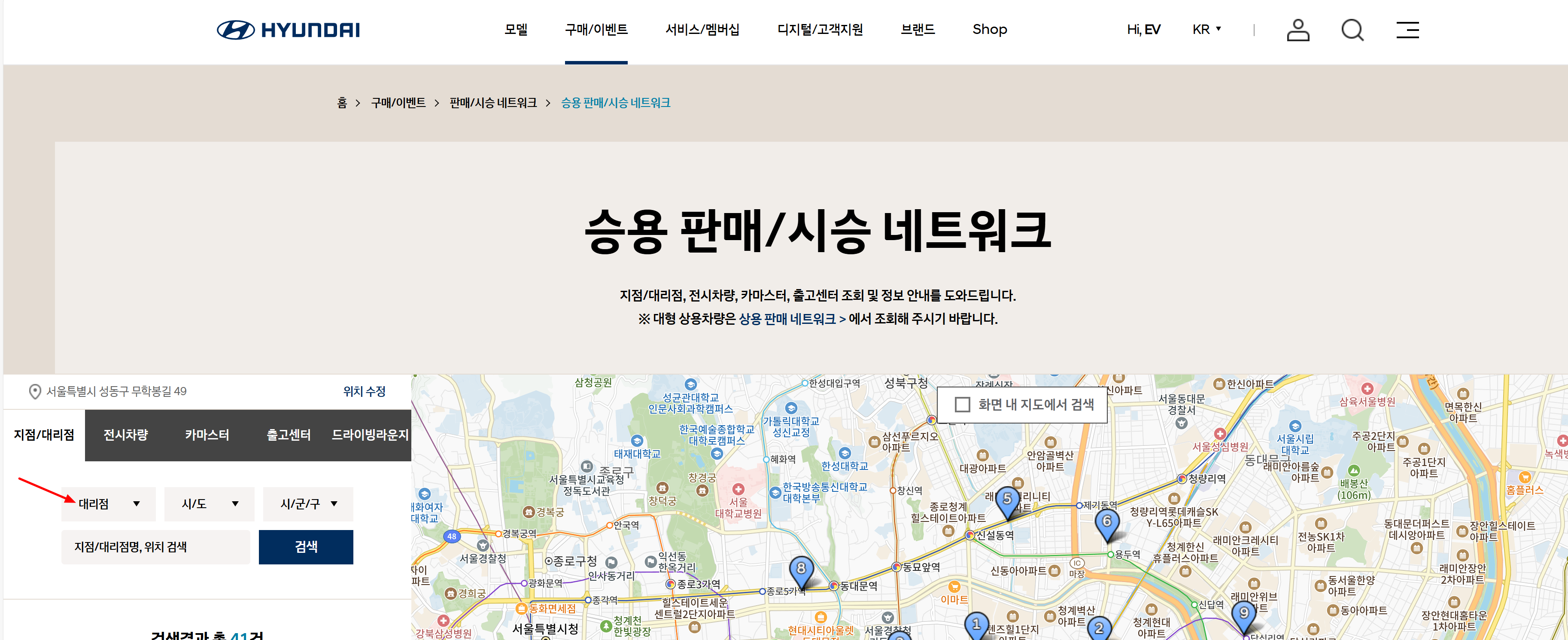 현대차 대리점 조회 - https://www.hyundai.com/kr/ko/e/customer/branch