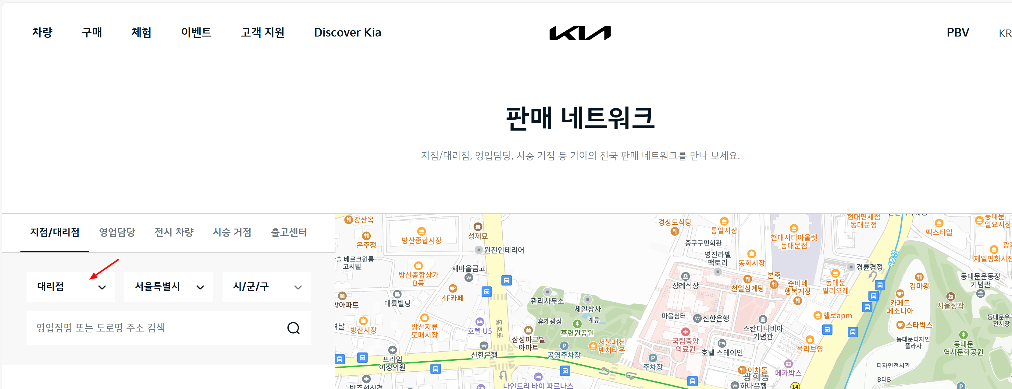 기아차 대리점 조회 - https://www.kia.com/kr/experience/branch/all-branch?msockid=397f39880b9b6d9812832cc20a1d6caa