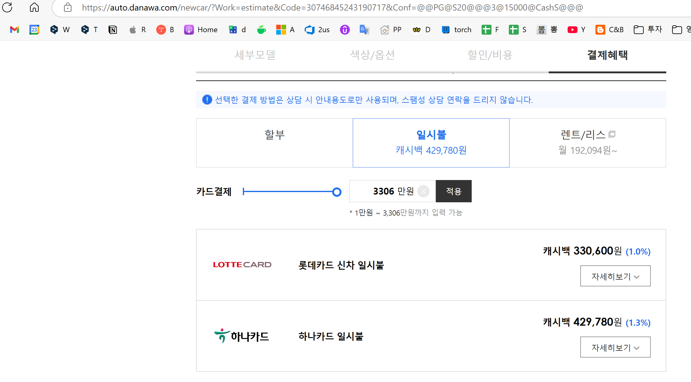 - 다나와 자동차에서 신차검색을 하면 카드 캐시백을 제공 카드사를 확인할 수 있습니다. 조건이 계속 변경되기 때문에 차량 인도 시점 전까지 확인해야합니다.