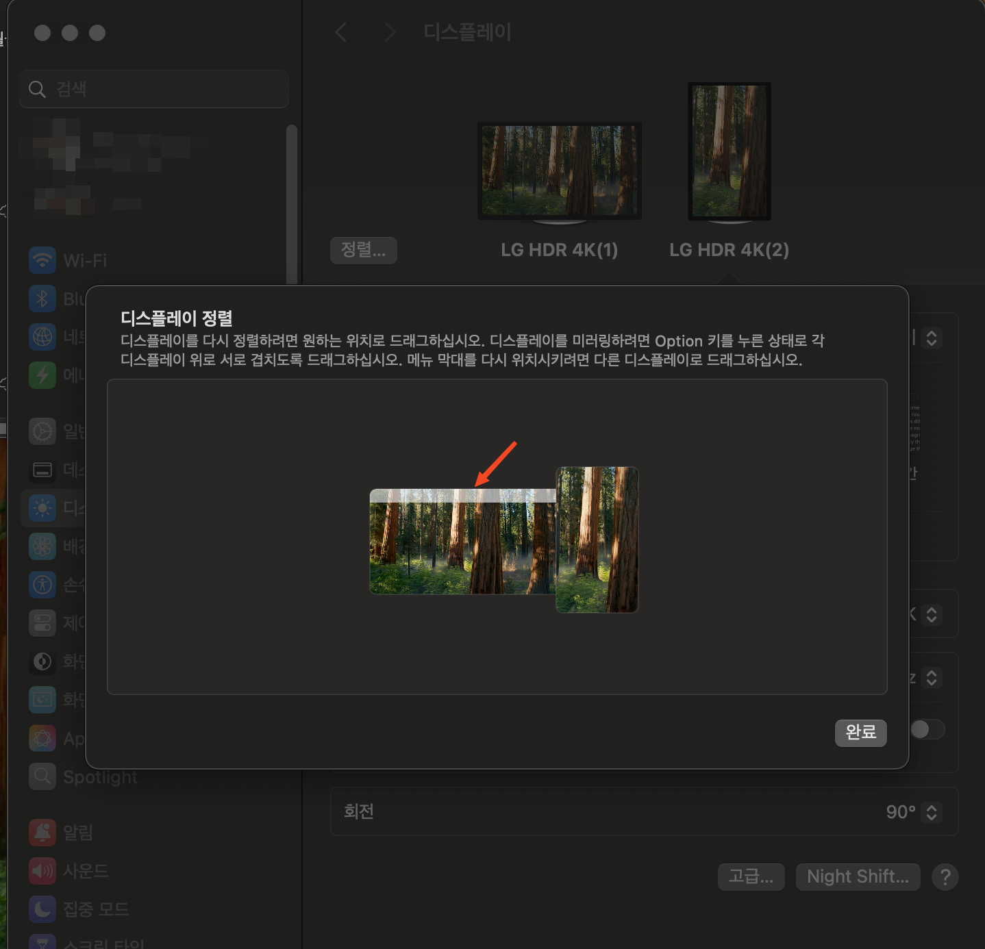 맥에서 듀얼 모니터를 사용시 여러 디스플레이중에서 주모니터를 설정하는 방법입니다.
