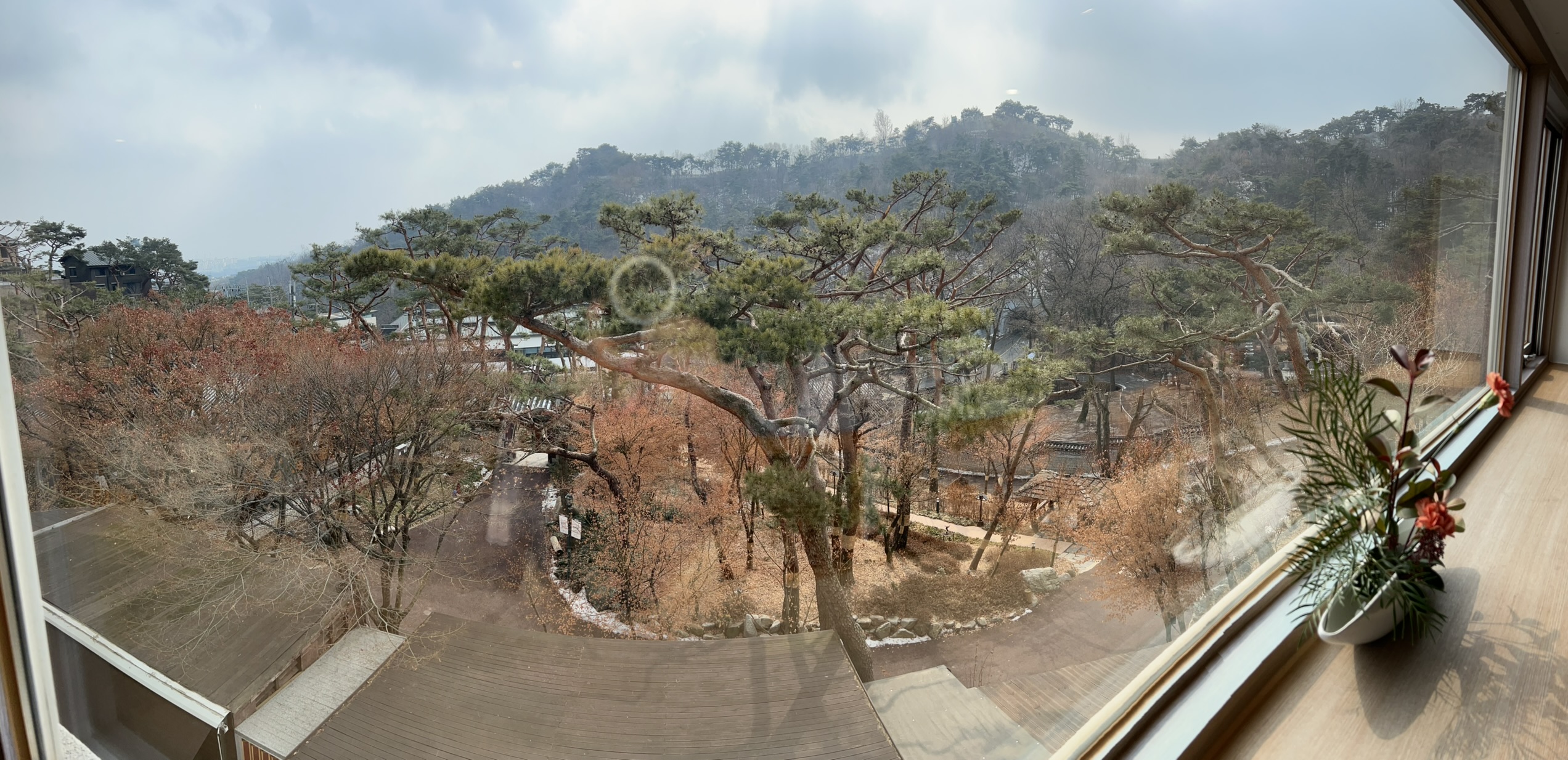 룸에서 바라본 전경입니다. 멀리 한양 도성벽도 보이고 삼청각 내부도 잘 보입니다. 따뜻한 봄에 이쁜 꽃들이 피어날 때 즈음이면 더 이쁠 것 같습니다.