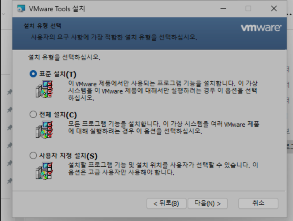 Vmware Fusion의 메뉴에서 Virtual Machine을 선택하고 Install VMware Tools를 선택합니다.