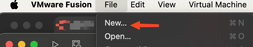 VMWARE FUSION 메뉴에서 File > New 를 선택하여 새로운 가상환경을 생성합니다.