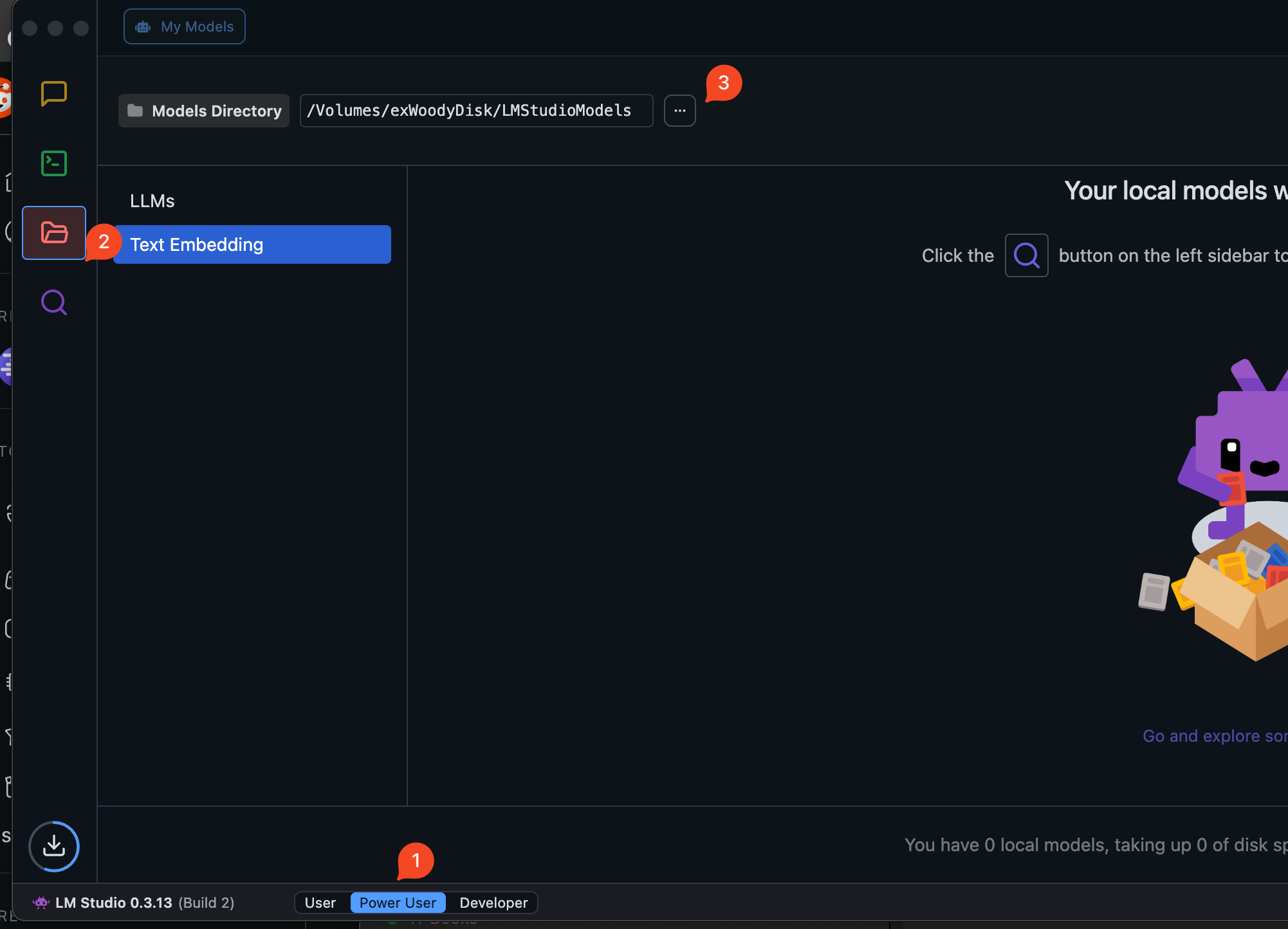 하단에서 Power User를 선택합니다. 좌측 메뉴에서 오픈 아이콘 선택하고 모델이 저장될 디렉토리를 지정합니다.
