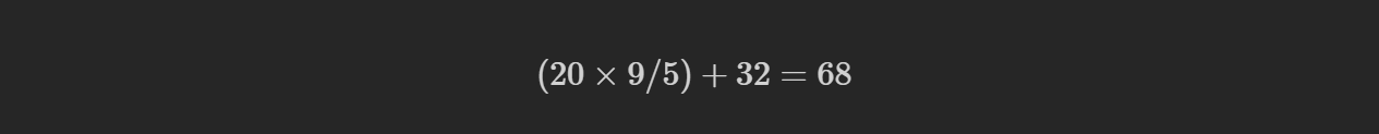 예를 들어, 섭씨 20도를 화씨로 변환하고자 할 때:
