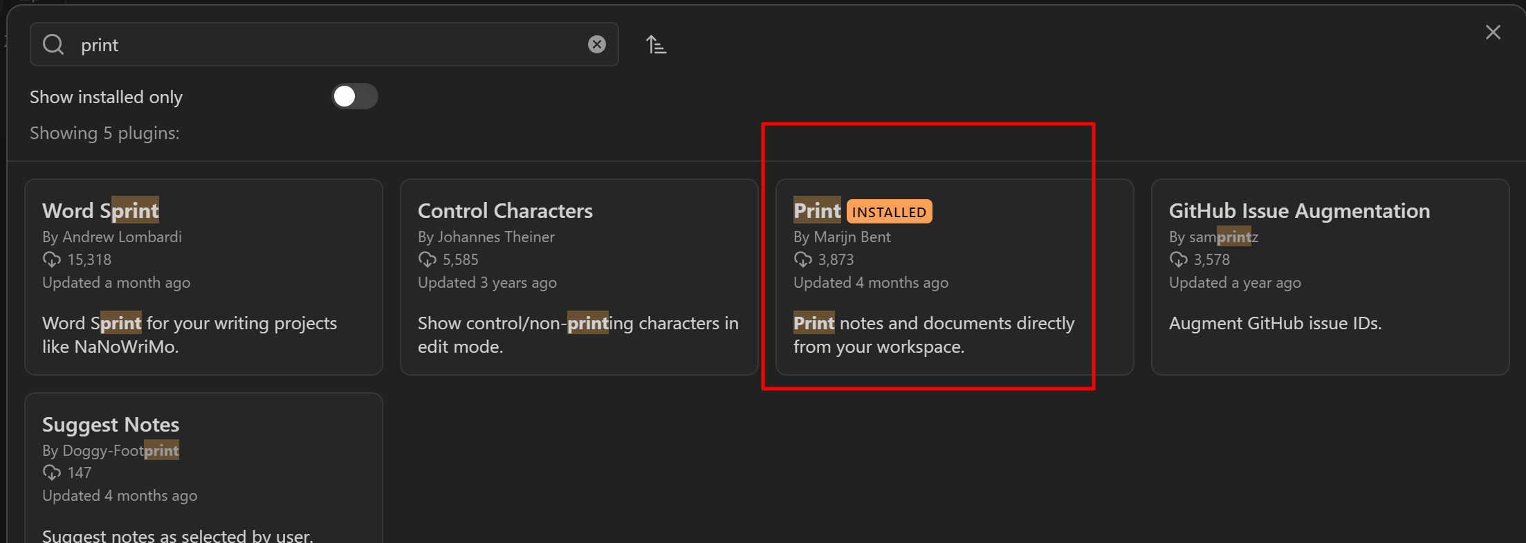 플러그인에서 print로 검색하여 Print라는 플러그인을 설치합니다.