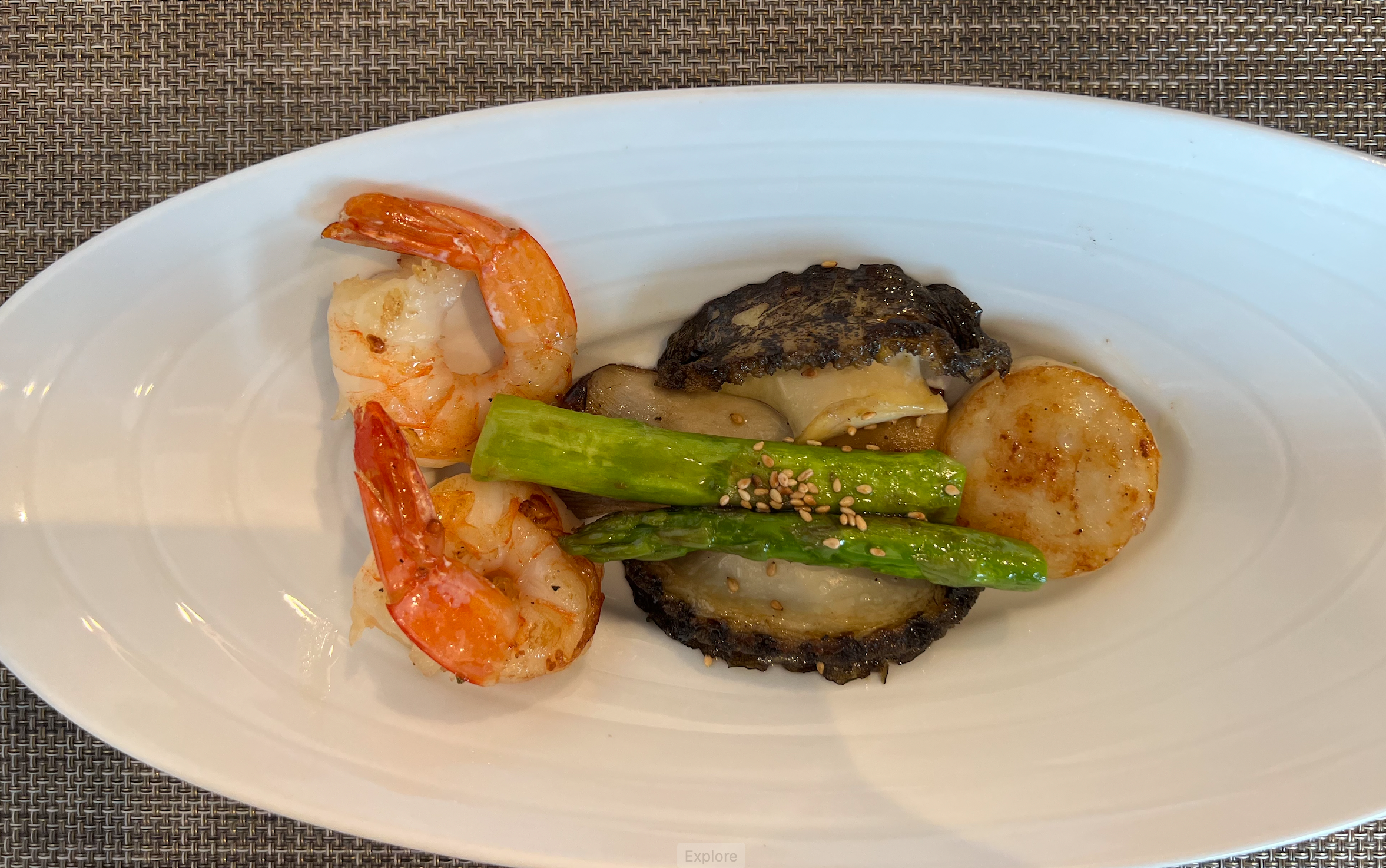 말린 귤을 주전부리도 먹고 있으니 첫번째 요리가 제공됩니다. 호박죽과 동치미 그리고 셀러드와 문어 및 새우입니다. 문어가 신선하고 부드러워서 맛있었습니다. 동치미국도 감칠맛이 좋았습니다. 미각을 돋구는데 제격입니다.